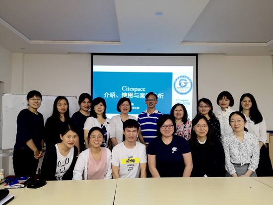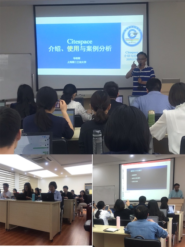 马老师在前两次讲座中介绍了软件NVivo的使用,在第三次讲座中梳理了软件CiteSpace的使用。关于软件NVivo,马老师首先从扎根理论说起,一步一步带领老师们理解了质化研究的机理,再润物无声地将这些机理揉合到软件的步骤中,可谓理论结合实践。这样一番讲解之后,在座的老师同学们都跃跃欲试。接下来以及在第二次讲座中,马老师结合演示手把手说明了该软件的操作。在第三次讲座中,马老师介绍了如“文献共被引(co-citation)”的文献引用及管理概念,并在此基础上,说明了软件CiteSpace的强大功能及实现方法。在座师生受益匪浅,抓住机会上手操作熟悉,并与马老师积极展开互动和深入交流。