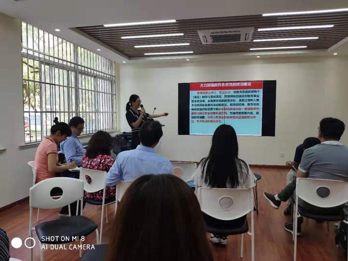 郑少东副教授做了题为《党支部政治建设与教育事业发展关系》的讲座。她结合国际国内环境讲解了党的政治建设的重要性与迫切性:深入推进反腐败斗争的必然要求;坚持和加强党的全面领导的必然要求;全面从严治党向纵深发展的内在需要。她分析了高校意识形态工作面对的复杂形势,比如全球化所引发的制度价值冲突、市场经济深度推进所引发的一系列政治和文化问题、信息网络技术迅猛发展所带来的思想价值挑战等等。她还结合高校教育中存在的现实问题讲解了切实加强教育系统党支部政治建设的主要方法:把党的政治建设摆在首位;发展积极健康的党内政治文化;把思想政治工作贯穿高校教育教学全过程,在学生中开展深入、持久、生动的爱国主义教育,让爱国主义精神牢牢扎根在学生的思想意识中。