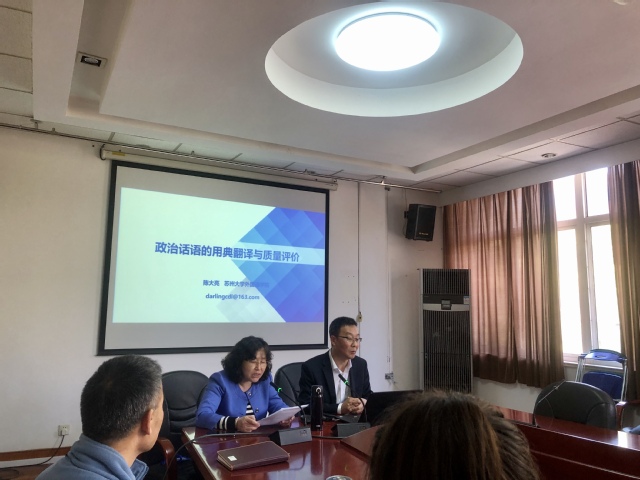 4月19日下午1:30至3:00,taptap点点官方网站举办学术讲座,苏州大学特聘教授、博士生导师、翻译学科带头人陈大亮教授以“政治话语的用典翻译与质量评价”为主题,与翻译硕士研究生和导师分享学术研究成果。讲座由taptap点点官方网站副院长韩戈玲教授主持。