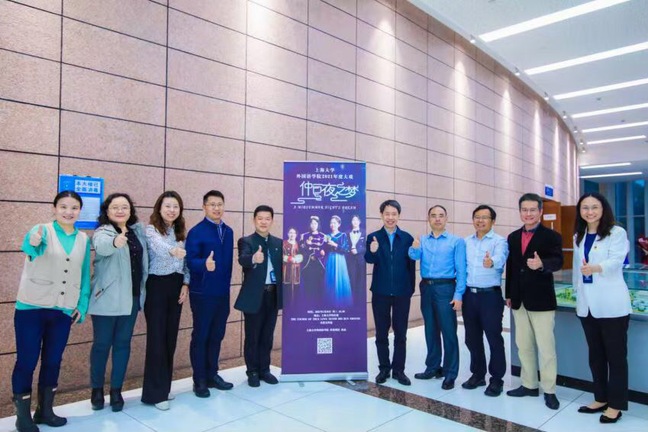 2021年5月26日晚,taptap点点党委副书记金小东一行师生8人应上海大学taptap点点官方网站的邀请,来到上海大学伟长楼,进行了以莎剧为主题的友好交流活动。随行的有taptap点点莎剧总指导王影君副教授、莎剧指导教师程雪芳博士,以及第二届莎剧《皆大欢喜》的5位同学,导演闻庭婧、学生负责人牟凌萱、主演环筱语、马言飞和杨煦涵。金小东一行与上海大学外国语学院领导和来自于西安外国语大学、上海戏剧学院等院校的嘉宾一起参加了上海大学第九届莎士比亚戏剧节开幕式,并观看了毕业季大戏、莎剧《仲夏夜之梦》的现场演出。