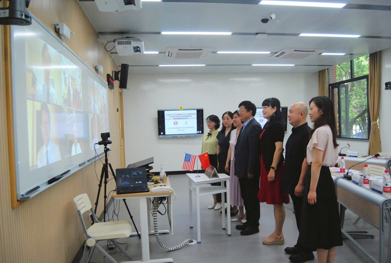 会上,纽约市立大学皇后学院艺术与人文学院院长William McClure表示了对项目的诚挚关心和祝愿;国际交流处处长马晓婷就两校合作指导学生开展创新创业项目建言献策;原项目专业负责人禹一奇总结了自己多年来项目工作经验,祝福项目越办越好;现项目专业负责人黄芳表达了为项目贡献全力的决心,期待项目能够更上一层楼。会议还听取了项目中方负责人刘芹的年度办学情况汇报和项目外方负责人Tao Wang的年度师资派遣情况汇报。