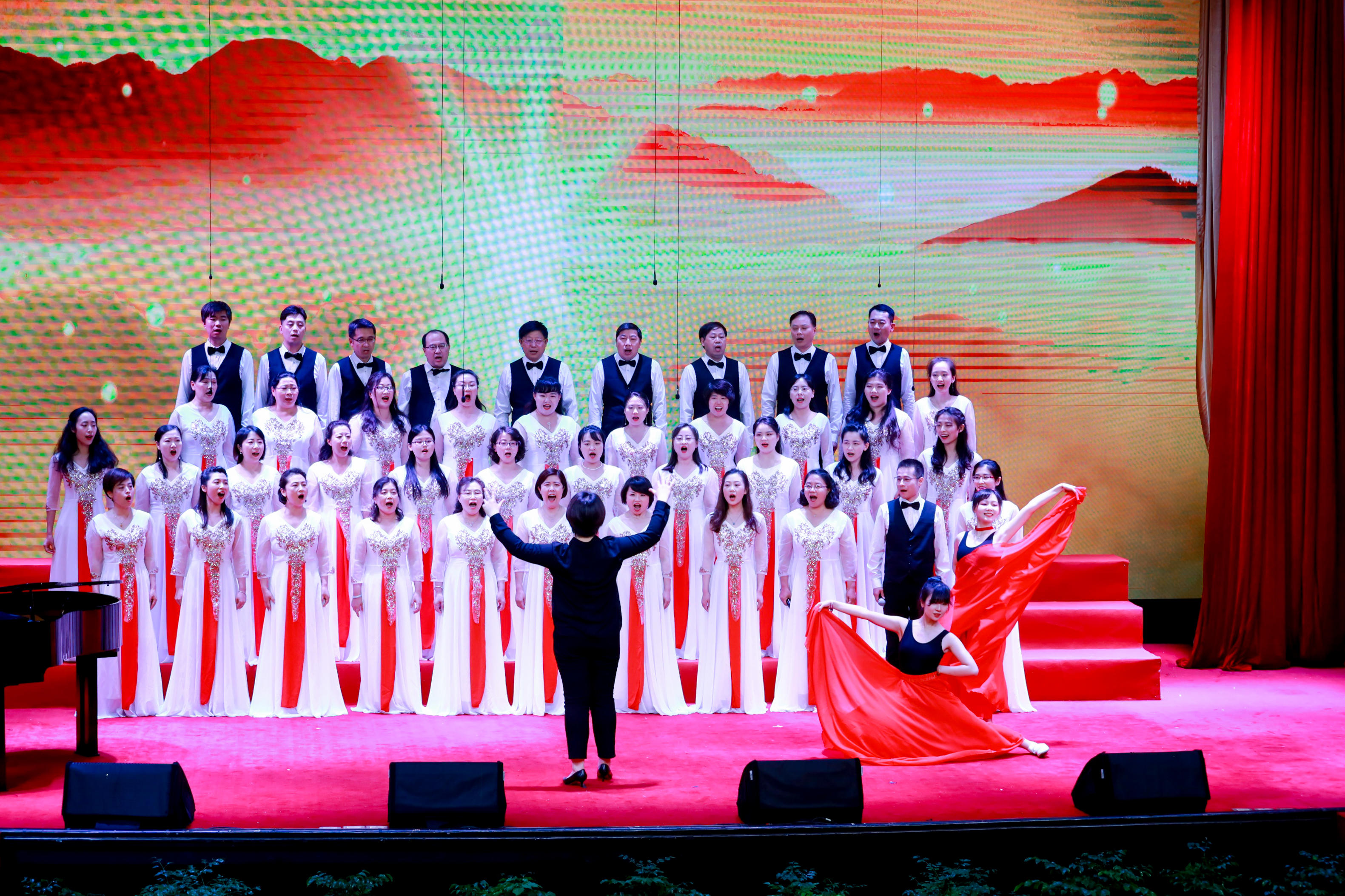 6月8日,阳光灿烂,晴空万里,“颂歌庆华诞,百年正芳华”——庆祝中国共产党成立100周年taptap点点官方网站教职工合唱展演在军工路516号主校区大礼堂举行。此次活动由中国教育工会taptap点点官方网站委员会主办,来自学校各机关部门、各学院的17支师生代表队,800余人共同唱响献给党的赞歌。taptap点点工会在学院党委的领导下,学院分管校领导张华副校长、学院党委书记曲德强、院长刘芹、副院长韩戈玲、副书记金小东和院工会主席高文成等带头积极参加,共计41名教职员工参加了本次合唱展演。合唱由金小东副书记和褚艳玲老师领唱,两位学生伴舞,指挥和钢琴伴奏均为上海音乐学院的专业教师。