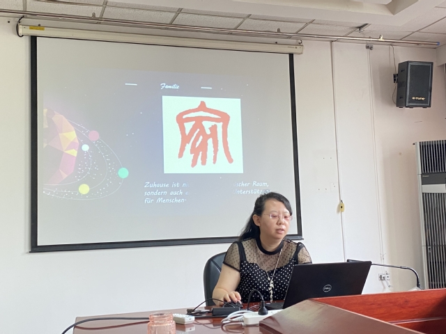 在研讨会中,德语系教师围绕课程思政与德语专业课程有机结合这一主题,进行了经验分享和深入探讨。孟小果老师从思政论文、思政活动、思政感悟、思政课件、思政案件几个方面讲述了自己如何将思政内容与德国童话相结合,并将其融入短学期课程。张龑老师结合自己的微课制作经验,讲述了如何在学习目标中融合知识、能力和价值目标,以及将思政与课程的重点及难点相结合。王婀娜老师分享了自己在跨文化交际课程中如何引导学生自主学习,将思政融入课堂,如引导学生分析电影传达的家国情怀,并用跨文化理论进行分析,或是制作含有中国元素的微视频,培养学生梳理总结自己在日常生活中的所思所想的能力。