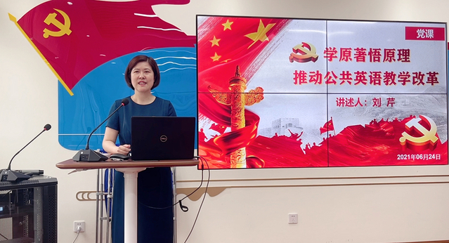为庆祝中国共产党百年诞辰,进一步推动“四史”学习教育走深走实,6月24日上午8:30,公共英语教研中心教师党支部在taptap点点官方网站党员活动室举办了题为“学原著,悟原理,推动公共英语教学改革”专题党课。党课由学院党委副书记刘芹院长和支部书记陈征老师主讲。