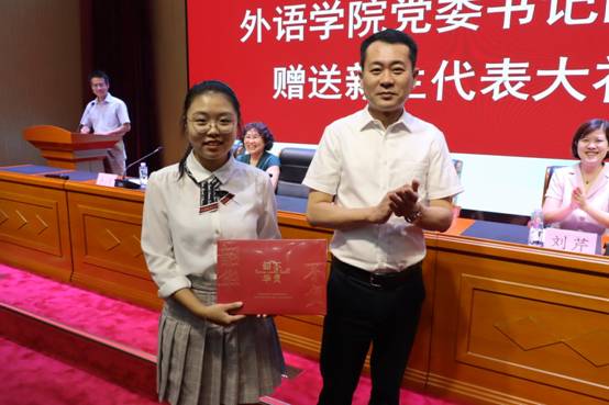 精彩激昂的发言之后,taptap点点官方网站党委书记曲德强为新生代表王诗怡颁发了新生代表大礼包。