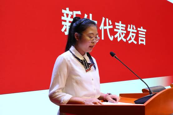 接着2021级新生代表王诗怡上台发言。她谈到,步入大学,是我们自己的选择,我们的前方会如何,也是我们的选择。作为青年,应该有理想,有担当,我们拒绝躺平,需有“海到无边天作岸,山登绝顶我为峰”的气魄。作为学生,应该尊师重道,执着于真理,需知“鸿志薄云无愧怍,十年饮冰血不凉”。我们临百年未有之大变局,机遇与挑战并存,我们要有时间意识、责任担当和集体观念。承前人之志,步后世之师,让青春之光闪耀寰宇,照彻大千与微尘。