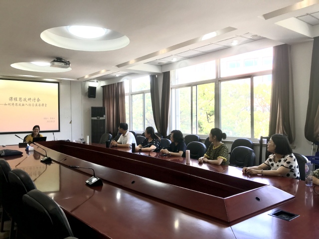 在9月23日第一次思政研讨会上,贾晓云副教授首先作了主题为“深化课程思政教学改革,落实立德树人思政课堂”的分享,详细介绍了《综合英语》课程思政建设实践实施策略、具体案例和育人成效,示范了如何将思政元素有机融入教学内容,并分阶段、有步骤地落实到具体课程中。《综合英语》课程教学组教师均表示受益匪浅,并各抒己见,展开了积极地课程思政探讨。