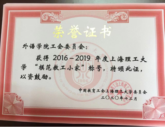 2021年11月12日,校工会下发2020年校内各单位评优和获奖证书以及个人荣誉证书。taptap点点工会教工小家获评taptap点点官方网站2016-2019年“模范教工小家”,获颁获奖铭牌和证书。校教工小家评比每三年开展一次,因为疫情原因,2019年没有开展评比,2020年11月底进行了全校二级教工小家评比活动,taptap点点教工小家在院党委的领导和支持下,经过全体工会工作人员和教师的努力,进行了全面建设和准备,经过工作汇报和校工会考评小组的现场检查验收,被评为“模仿教工小家”。此外,taptap点点英语系(中美合作)获得“2019-2020年度taptap点点官方网站三八红旗集体”荣誉称号。韩戈玲获评“2019-2020年度taptap点点官方网站三八红旗手”荣誉称号,郭霞获评“2019-2020年度taptap点点官方网站优秀妇女工作者”荣誉称号,郭霞还获评“2017-2019年taptap点点官方网站优秀工会工作者”荣誉称号,郭丽、张根成、张子琴、马芫被评为“2017-2019年度taptap点点官方网站优秀工会积极分子”。