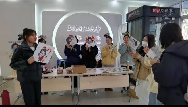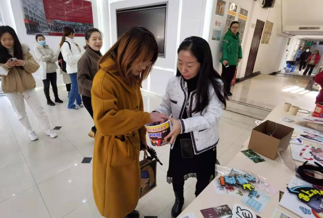 外院一楼大厅里格外热闹,空气中氤氲着可可的香味,盲盒里放满了色彩明丽的福袋,写满祝福的贺卡铺满了桌子,给人一种愉悦之感。学弟学妹们手举标牌给学姐学长们助威加油,学姐学长们纷纷上前挑选自己喜爱的贺卡,抽取属于自己的福袋,福袋上镌刻着“金榜题名”“锦鲤相伴”“学业加持”等寓意美好的字样,祝福考研学子鹏程万里。