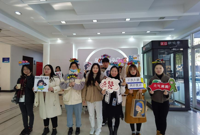 三位身着颜色亮丽衣服的“小彩人”,她们笑容灿烂,对到来的学长学姐带来热烈的拥抱。“小绿人”寓意一路顺利,预祝学姐学长答题顺畅。“小红人”寓意红红火火,鸿运当头,预祝学姐学长超常发挥,考出最傲人的成绩。“小黄人”寓意走向辉煌,预祝学姐学长一战成硕,2022迎接崭新的自己!
