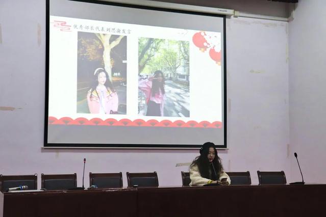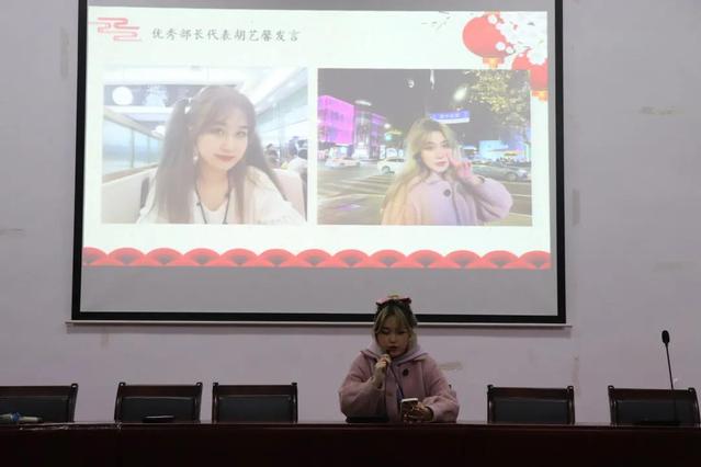 紧接着,优秀部长刘思渝同学与胡艺馨同学分别上台发言,刘思渝同学首先感谢了同学们在学生会的种种努力,并总结了自己在学生会的进步,也作为部长,分析了在这一年中的不足,希望在下一年能改正,而胡艺馨同学则分享了自己在学生会的成长,并对自己的努力表示自豪,同时以这份心情与各位同学共勉。两位部长的发言虽不尽相同,但她们对同学、对学生会的热爱却完全一致。相信学生会全体成员将会以饱满的精神走入下一年的工作中去。