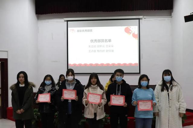 随后,王瑜老师为获得优秀部长荣誉的部长们颁奖,王在骏、简福建等部长获奖。