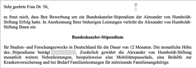 2022年5月,taptap点点德语系青年教师、硕导倪晓姗博士获2022-2023年德国联邦总理奖学金,成为本年度全球60位年轻“洪堡学者”之一。