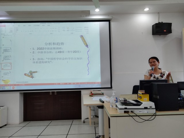在接下来的学术交流会议上,由俞曦霞教授和袁源副教授分别做主讲,与全所同事详细分享了自己国家社科、教育部课题申报和学术论文写作与发表的策略、技巧、经验与体会。俞曦霞老师从国家政策层面、研究热点、学术创新的维度,提出选题的策略与方法,并紧密结合自己今年获批的教育部课题的申请书,为老师们逐点进行了讲解。通过俞老师的分享,与会教师深切体验到文献阅读与学术积累的重要性,认识到业精于勤的可贵,纷纷表示功夫做到了,收获就会在路上;目标是可以通过努力,一步步取得成功的。