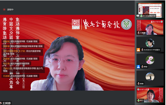 专家对谈环节,王婀娜副教授以《中国的跨文化日耳曼学的教学和科研》为题与来自北京语言大学、辽宁大学、北京外国语大学、浙江金融职业学院、广东外语外贸大学的另外7名专家围绕各专业建设与中国文化国际传播进行了经验交流。
