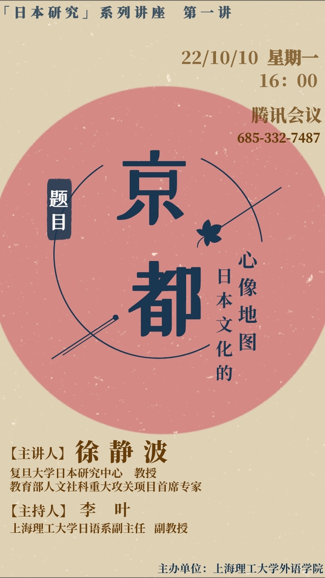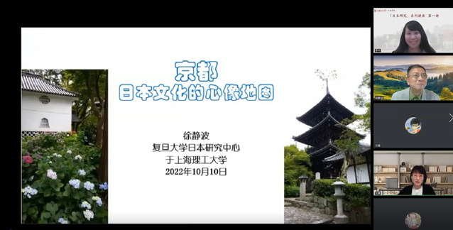 10月10日下午,作为taptap点点“日本研究”系列讲座的第一讲,日语系有幸邀请到复旦大学日本研究中心教授、教育部人文社科重大攻关项目首席专家徐静波教授,带来题为“京都——日本文化的心像地图”线上讲座。讲座由日语系副主任李叶副教授主持,包括兄弟院校在内的200余名师生在线聆听。
