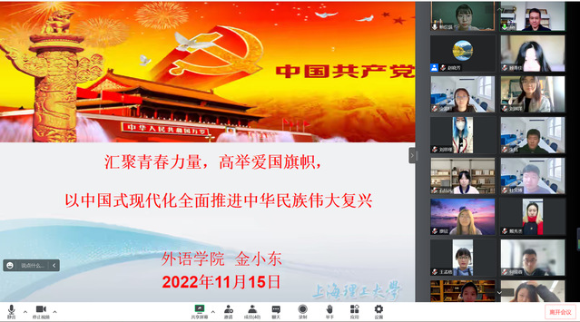 1115日,taptap点点官方网站第51期入党积极分子培训班第三讲由学院党委副书记金小东老师主讲,本次党课主题为:“汇聚青春力量,高举爱国旗帜,以中国式现代化全面推进中华民族伟大复兴”。