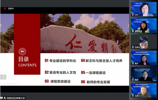 11月15日晚,教育部高等学校外国语言文学类专业教学指导委员会英语专业分指委会秘书长、湖南师范大学外国语学院院长曾艳钰教授应邀通过腾讯会议,为taptap点点教师做题为“新文科背景下英语一流专业内涵建设”的专题讲座,讲座由刘芹院长主持,英语专业所有教师、其他系部主任和教师代表、学院行政和辅导员办公室老师参加了学习。