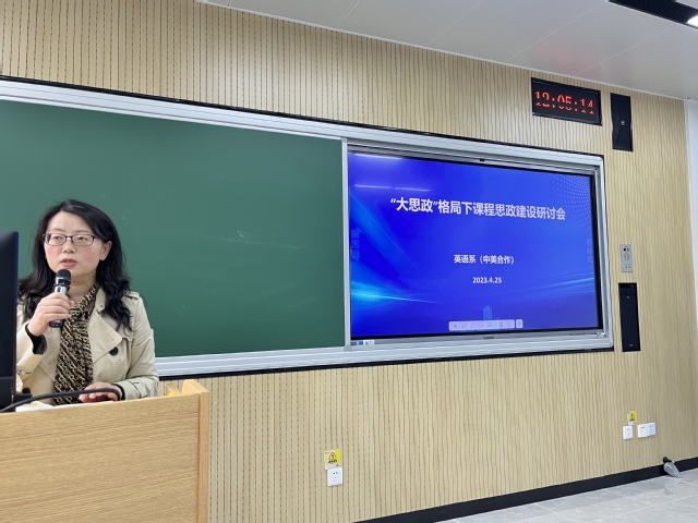4月25日中午,英语系(中美合作)在第四教学楼115教室召开了关于“大思政”格局下课程思政建设的研讨会。本次会议由系主任黄芳老师主持,英语系(中美合作)全体教师出席。