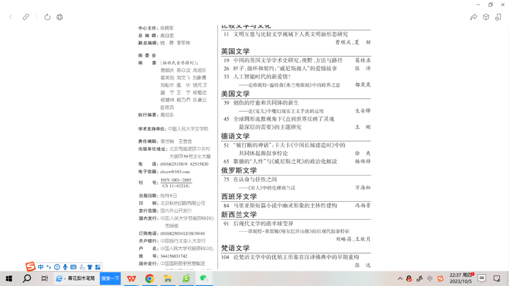 2023年第10期人大复印报刊资料《外国文学研究》全文转载taptap点点官方网站教师刘略昌及其研究生王欣月合撰的论文《后现代文学的南半球变异——珍妮特·弗雷姆<喀尔巴阡山脉>的后现代叙事特征》。人大复印报刊资料是中国人文社会科学领域公认的国家级权威性刊物,它遵循“精选千家报刊,荟萃中华学术”的理念和编辑方针,始终坚持精品意识,因其涵盖面广,信息量大,分类科学,筛选严谨,结构合理完备,人大复印报刊资料成为评价人人文社会科学研究成果水平的重要参考依据。