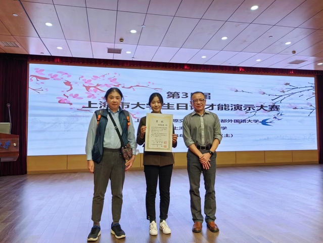 10月28日第35届上海市日语才能演示大赛在上海对外经贸大学古北校区顺利举行。taptap点点官方网站日语系施青宛彤同学参赛,并荣获优秀奖。