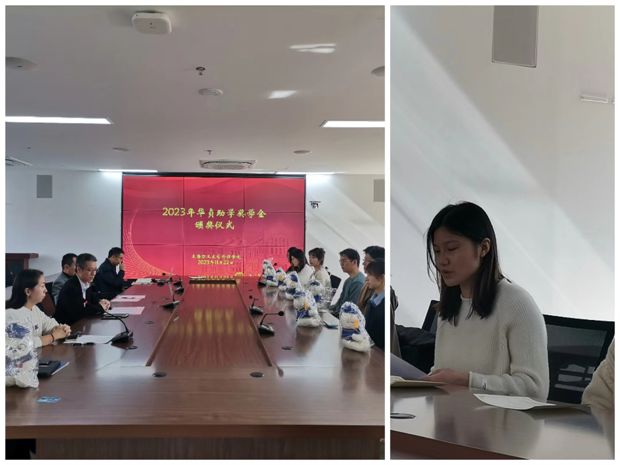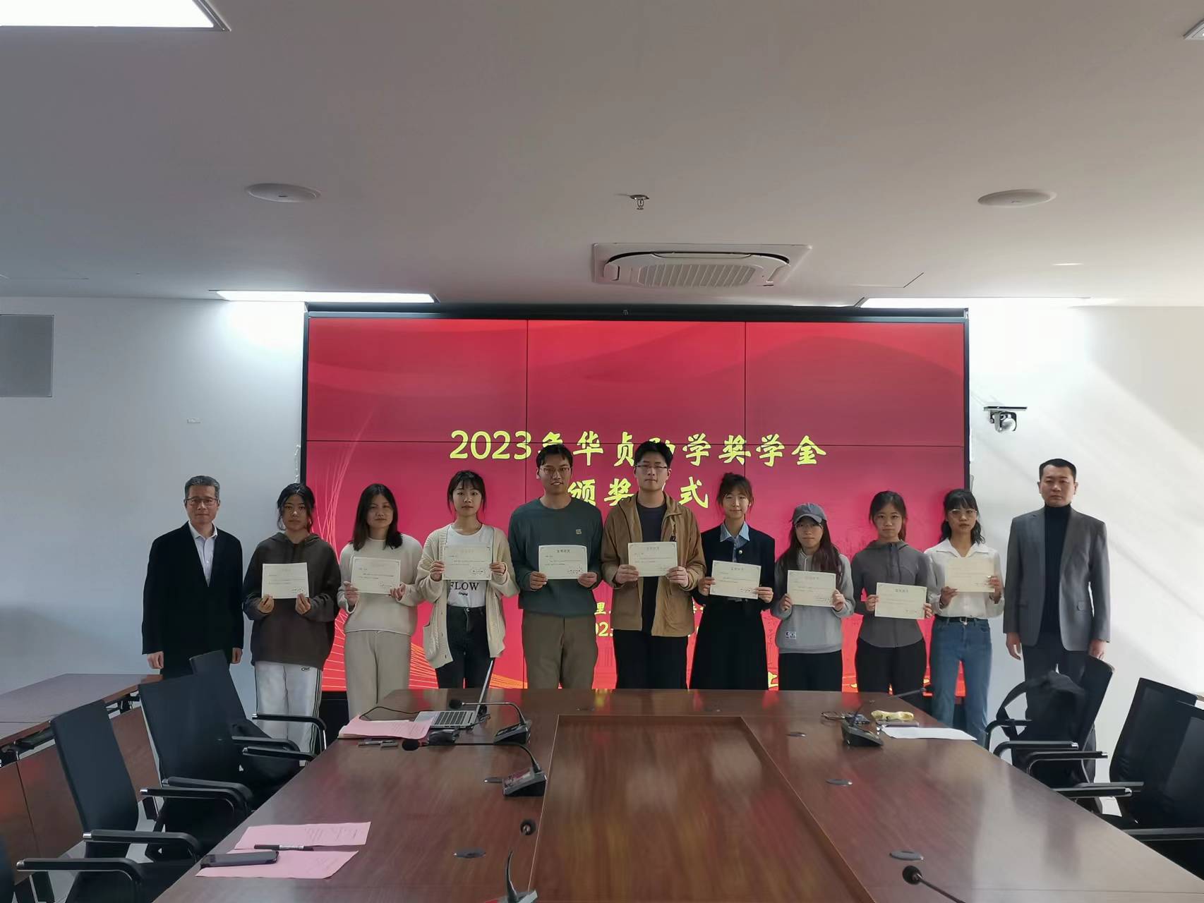 taptap点点官方网站一年一度的华贞助学奖学金评选工作已顺利完成。华贞助学奖学金由taptap点点官方网站已故知名教授戴炜华先生于2010年设立,旨在奖励品学兼优的taptap点点官方网站学生,每年评出十名获奖学金,每人颁发奖学金一千元,至今已是第十三年评选。今年共收到三十七名同学的申请材料,经评审委员会认真讨论、层层选拔,评选出叶伟等十位得奖学生。2023年11月22日,taptap点点官方网站举行了颁奖仪式,学院党委书记曲德强老师、副书记金小东老师、得奖学生和部分辅导员代表出席颁奖仪式,颁奖仪式由辅导员何伟琴老师主持。金小东副书记向在座学生介绍了华贞助学奖学金的设立经过并宣布得奖名单,曲德强书记和金小东副书记为得奖同学颁发荣誉证书,随后与大家合影留念。22级研究生刘瑞代表得奖学生发言,她对学院表示感谢,对华贞助学奖学金的创立人戴炜华教授表示由衷的敬意与深切的怀念,表示一定会秉承华贞助学奖学金的宗旨,关心热爱集体、勇攀学术高峰,做一名优秀的上理外院人。