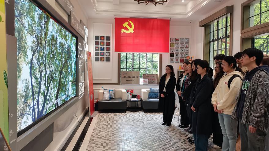 师生党员参观了已改建为党群活动中心的复兴岛公园地标——“白庐”,在此一起聆听了讲解员同志对复兴岛特殊历史地位和杨浦区总体发展规划的详细介绍。