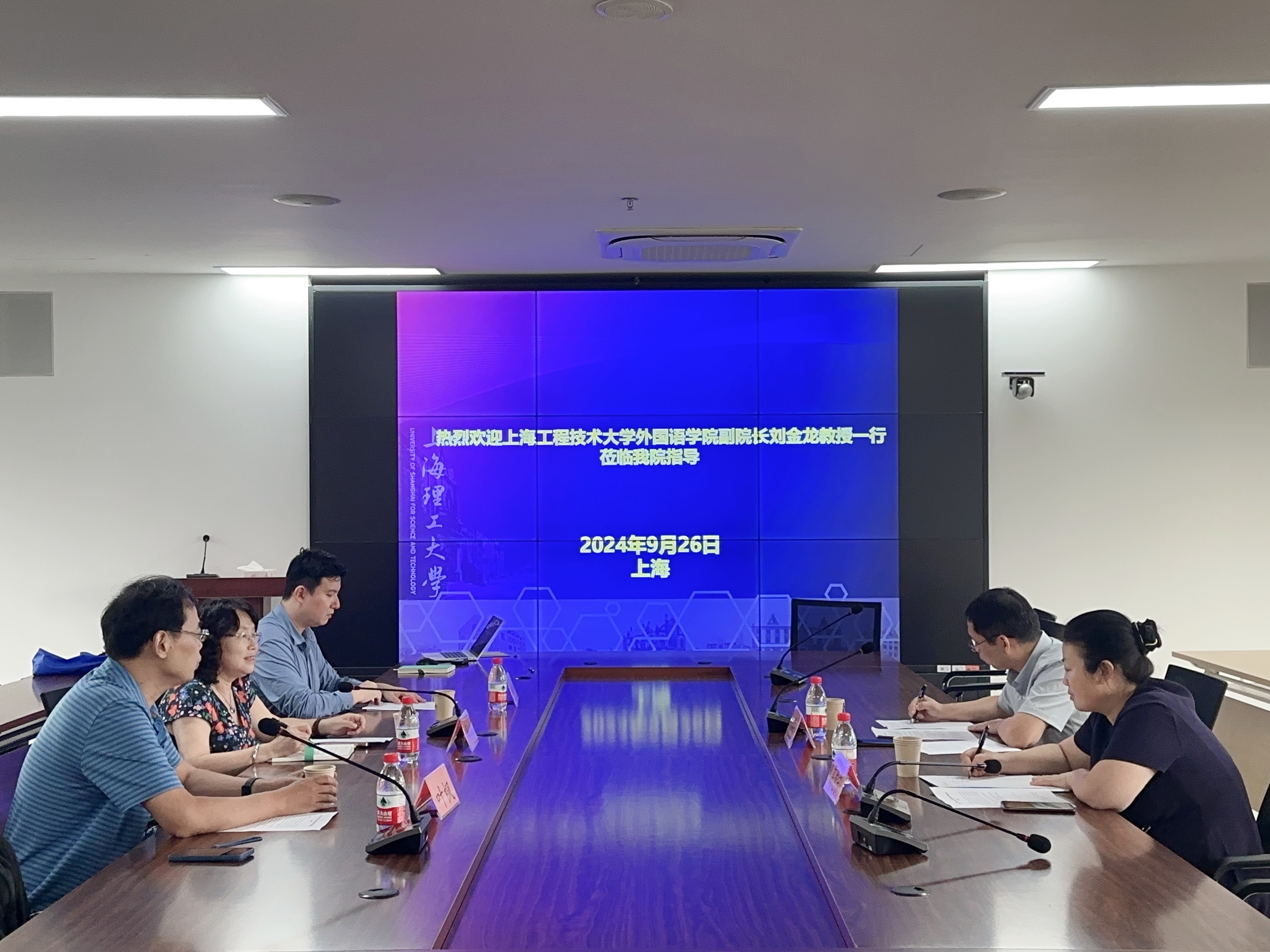 9月26日,上海工程技术大学外国语学院副院长刘金龙和大学外语教学部副主任高艳宁一行莅临taptap点点官方网站调研。此次调研围绕研究生阶段的公共英语课程设置与教学情况展开,双方进行了深入的交流与探讨。taptap点点官方网站韩戈玲副院长、缪蓬及叶枫老师参加交流活动。