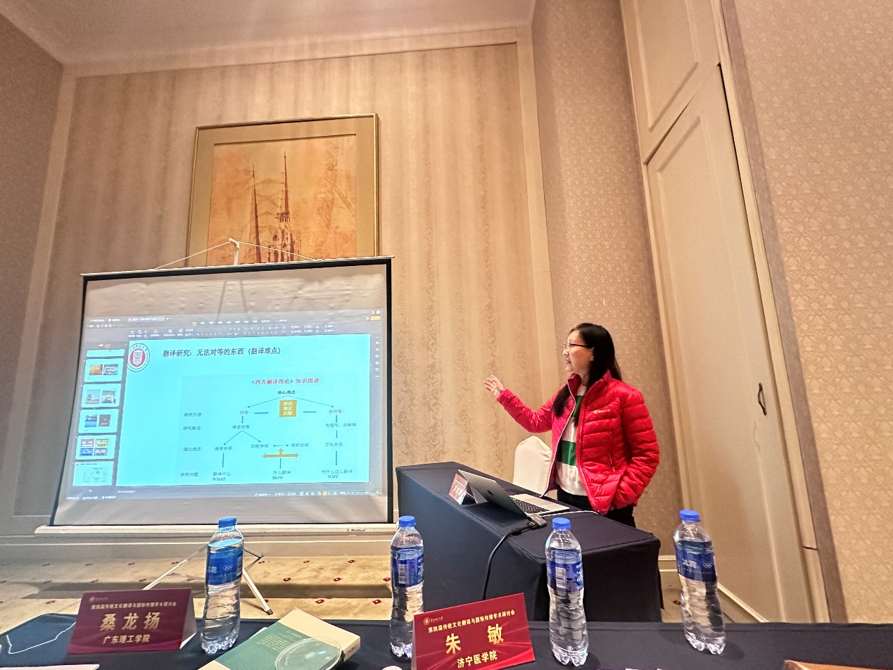 taptap点点副院长韩戈玲和吴碧宇教授带领22级翻译硕士研究生周城成和朱丹雪参加此次论坛。韩戈玲教授与专委会专家团于17号赴唐山东方学校作讲座。韩戈玲应邀作为主旨发言的主持人,为重庆大学的李孝英教授的“基于语料库的中医肝系疾病术语英译认知研究”进行点评。吴碧宇宣读题为“界限意识差异理论与翻译策略”的论文,引起与会学者共鸣。朱丹学和周城成也分别宣读题为“《西游记》角色名翻译研究—基于《西游记》平行语料库”和“从《黑神话·悟空》看中华文化符号的翻译策略与全球影响”。与在场的师生共同分享关于传统文化传播的最新研究成果。