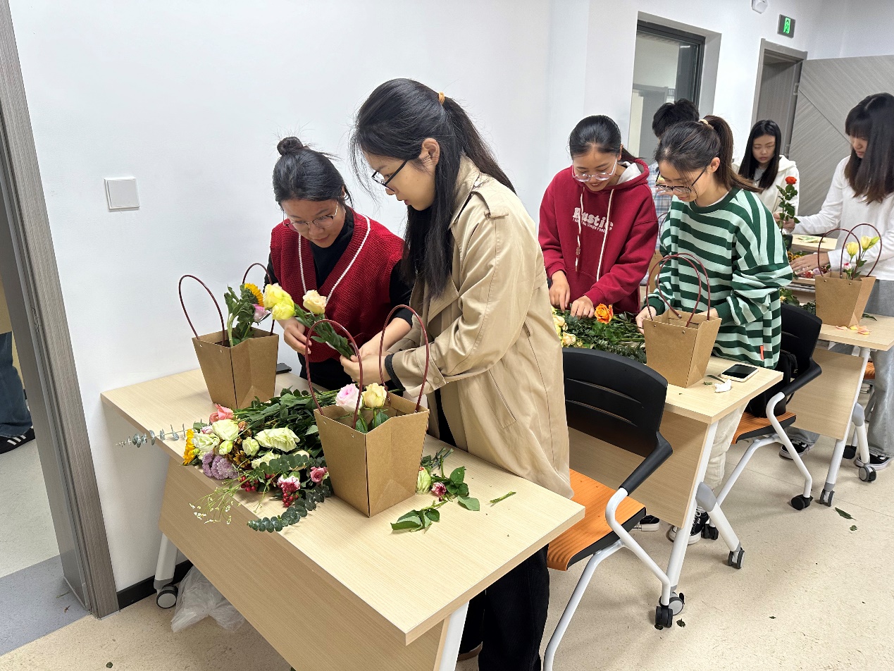 在一束束精心设计的插花作品中,大家不仅感受到非遗文化的独特艺术魅力,更体验到亲手创作的乐趣。整个过程中,插花带来的愉悦与成就感使同学们放松了心情,消除了学业带来的压力。许多同学表示,自己在插花创作中不仅收获了新技能,也加深了对传统文化的理解与热爱,更希望将这种美感融入日常生活,让寝室环境更加温馨。