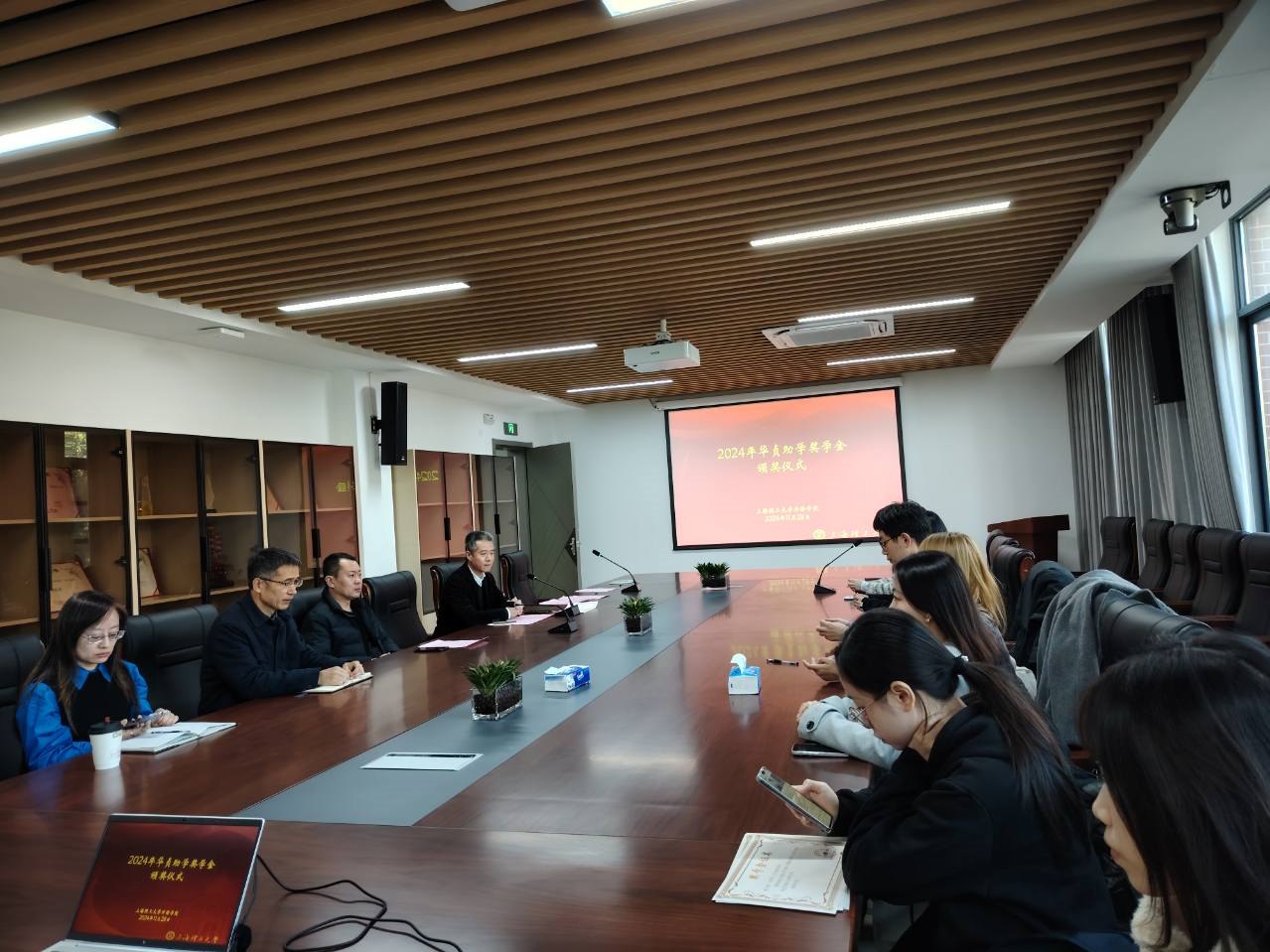 一年一度的taptap点点官方网站华贞助学奖学金评选工作已顺利完成。华贞助学奖学金由taptap点点官方网站已故知名教授戴炜华先生于2010年设立,旨在奖励品学兼优的taptap点点官方网站本研学生,每年评出十名得奖者,每人颁发奖学金一千元,至今已是第十四年评选。本次共收到四十五名同学的申请材料,经评审委员会认真讨论、层层选拔,评选出代俊璇等十位得奖学生。2024年11月28日,taptap点点官方网站举行了华贞助学奖学金颁奖仪式,学院党委书记曲德强老师、副书记金小东老师、得奖学生和相关辅导员出席。颁奖仪式由辅导员何伟琴主持。金小东副书记向在座学生介绍了华贞助学奖学金的设立经过,曲德强书记宣布得奖名单,希望得奖同学刻苦学习、不辜负戴教授的殷切希望。研究生殷昕怡代表得奖学生发言,她对taptap点点官方网站表示感谢,对戴炜华教授表示由衷的敬意与深切的怀念,表示一定会秉承华贞助学奖学金的宗旨,潜心钻研学术,争做优秀的上理外院人。曲德强书记和金小东副书记为得奖学生颁发荣誉证书,随后与大家合影留念。