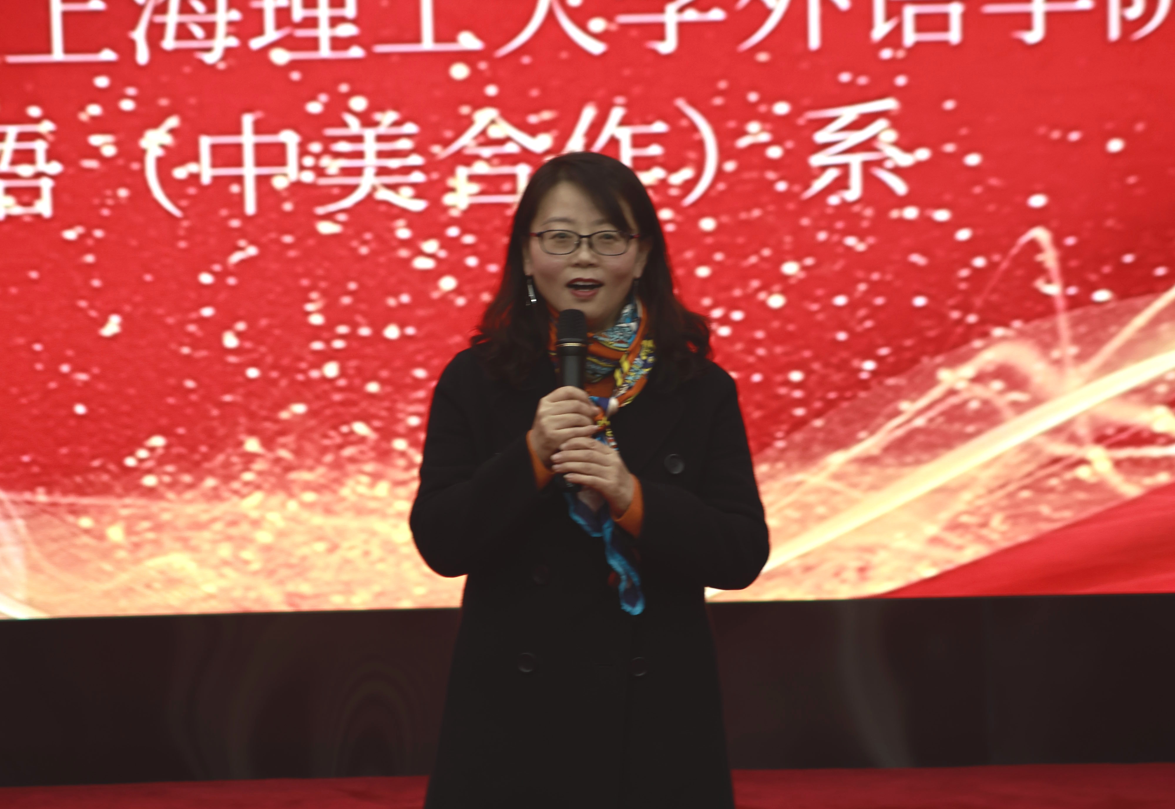 最后,莎士比亚戏剧节总负责人王影君老师致闭幕辞,她感谢了领导、同事和同学们一如既往的支持,表扬了同学们对莎士比亚戏剧的演绎和热爱,肯定了同学们英国文学课外的戏剧实践成效,赞扬同学们勇于克服各种困难,成就并展现了一个更优秀的自己。她表示莎士比亚戏剧经典历经四百余年,常演不衰,在同学们的演绎下今晚再度璀璨。很高兴今天能够与同学们欢聚一堂,享受莎翁带来的经典。祝愿同学们的未来也如莎剧一样,有无限可供演绎出的经久精彩。