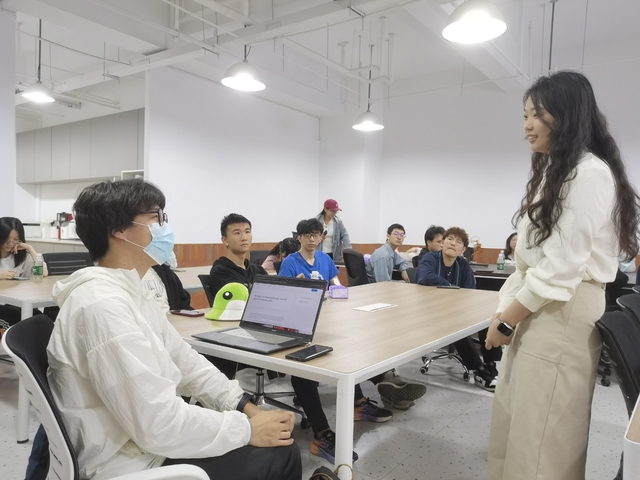 在互动环节,学生们围绕“小语种语料库的稀缺性问题”“跨学科人才在语料库构建中的作用”“智能时代的实习实践”等话题积极提问,雷懿宁结合公司项目经验逐一解答,现场氛围热烈。