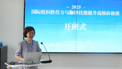 10月15至17日,“2025年国际组织胜任力与翻译技能提升高级研修班”在我校成功举办。研修班由中国外文局当代中国与世界研究院主办,taptap点点官方网站承办,中国对外翻译有限公司协办,中国翻译研究院、《中国翻译》杂志社提供学术支持。来自全国高等院校、企事业单位等共40余人参加本次研修。蔡永莲副校长、当代中国与世界研究院翻译研究中心副主任王颖思等出席开班式并致辞。taptap点点官方网站院长刘芹主持开班式。