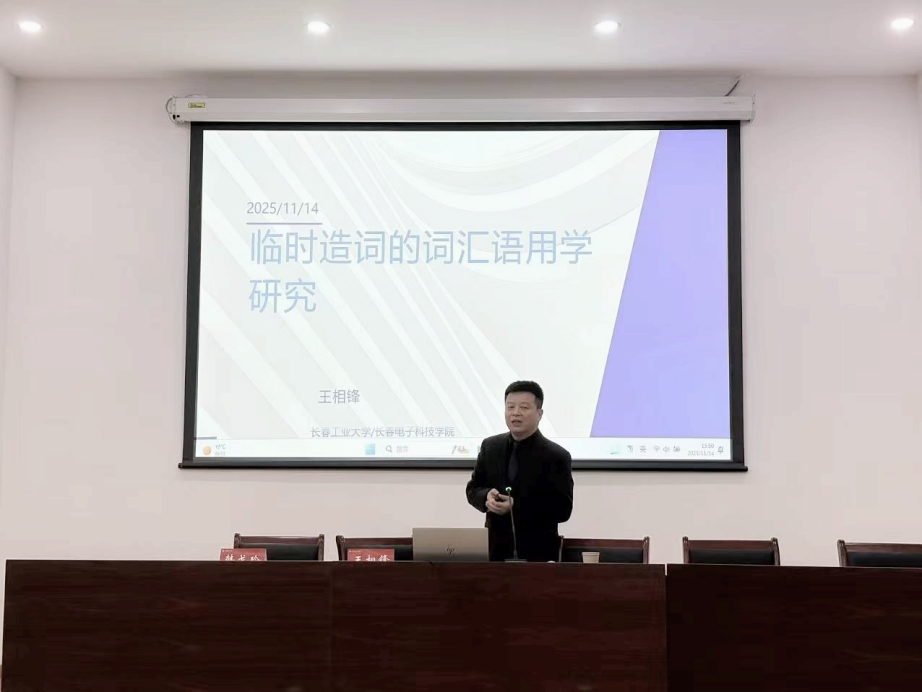 第七届研究生学术论坛颁奖仪式后,taptap点点特邀长春工业大学王相锋教授作 “临时造词的词汇语用学研究”专题讲座。王教授围绕临时造词的即时性、临场性、灵活性核心特征,以关联论为视角,结合实例解析其语用机制与多元语用功能,还细致解答师生相关提问。最后,韩戈玲副院长强调讲座价值并鼓励研究生关注语言实践开展研究。此次讲座不仅为师生们搭建了与语言学权威专家交流的平台,更深化了大家对临时造词及词汇语用学的理论认知,为taptap点点在语言学研究领域的人才培养和学术创新注入了新的活力。