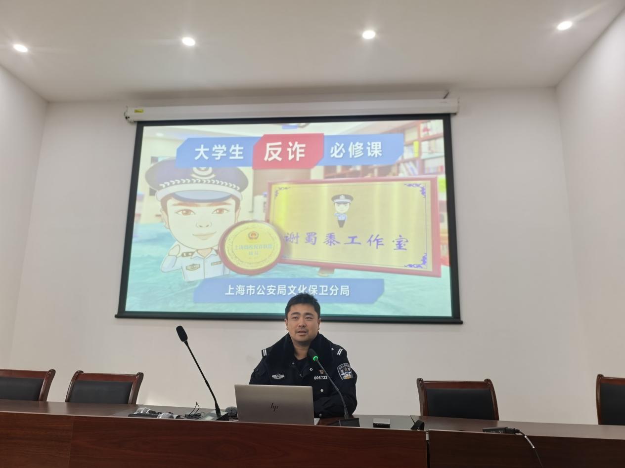 本次活动特邀上海市公安局文化保卫分局治安管理支队副支队长、高校反诈宣传品牌“上海高校反诈联盟”及“谢蜀黍工作室”负责人谢晔警官担任主讲人,为外院学子带来一场生动、深刻、实用的防诈知识课。