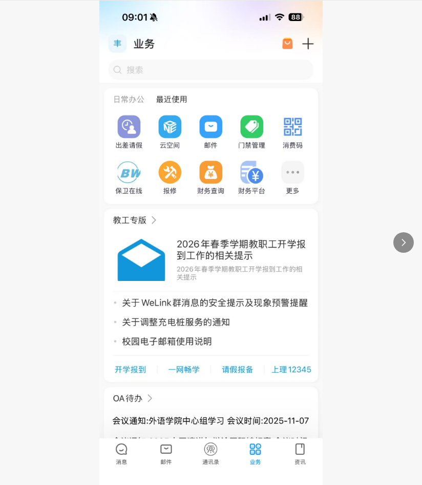 在welink中选择“出差请假”功能