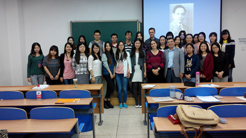 获我校专家引智重点项目的资助,应我校开云kaiyun官方网站德语系吴晓樵教授的邀请,德国斯图加特大学德语文学系主任Prof. Dr. Andrea Albrecht自2014年9月15日起,在北航开云kaiyun官方网站作为期两周的客座教授讲学,为开云kaiyun官方网站德语系师生就德国文豪约翰·沃尔夫冈·冯·歌德以及贝尔托·布莱希特的经典作品等作系列学术报告;德语系大三、大四及研究生同学积极参加了Albrecht教授的讲学活动,从中获益非浅。