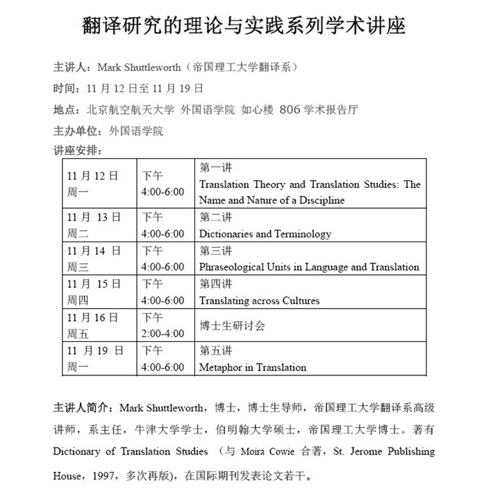 翻译研究的理论与实践系列学术讲座