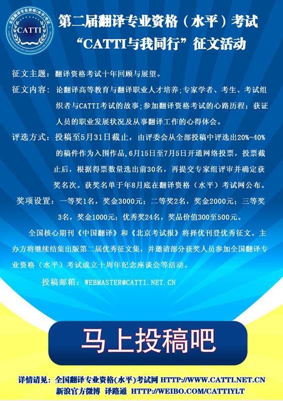 第二届全国翻译专业资格(水平)考试征文活动征稿启事