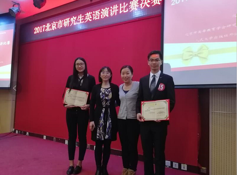 1210日上午,2017年北京市研究生英语演讲比赛决赛在北京大学落下帷幕,我校仪器科学与光电工程学院姚秋实和吴若彤同学分别获得本次大赛的特等奖和一等奖。