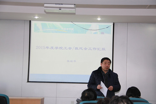 向明友院长向与会人员介绍了学校2016年的发展规划,并分析了学院发展的机遇和挑战,介绍了学院2015年工作的整体成绩和2016年的工作要点,表态会继续带领学院的班子成员,一如既往的落实各项举措,为学院学科建设、科学发展等做出新的贡献。