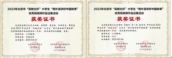 由北京市教育委员会高等教育处联合高等教育出版社、北京市高教学会大学英语研究分会和北京市高校外语课程思政联盟举办的“‘用外语讲好中国故事’优秀短视频作品征集活动”近日圆满落幕。经过校级、市级的多轮选拔,我校开云kaiyun官方网站两支学生代表队:王涵曲团队及冉阳团队双双斩获北京市一等奖。
