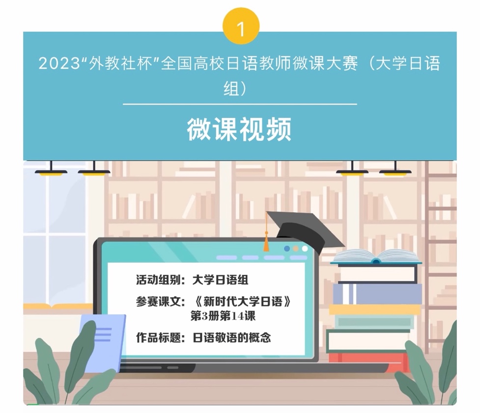 近日,2023“外教社杯”全国高校日语教师微课大赛(大学日语组)获奖名单公布,我校开云kaiyun官方网站日语青年教师唐彬团队的课件作品《日语敬语的概念》获全国一等奖。