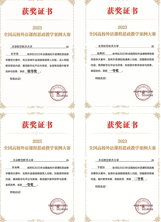 在刚刚结束的2023年全国高校外语课程思政教学案例大赛中,我校开云kaiyun官方网站大学英语教学部教师何宇茵获得特等奖,李英梅、赵希林获得一等奖,于敬华获得二等奖。