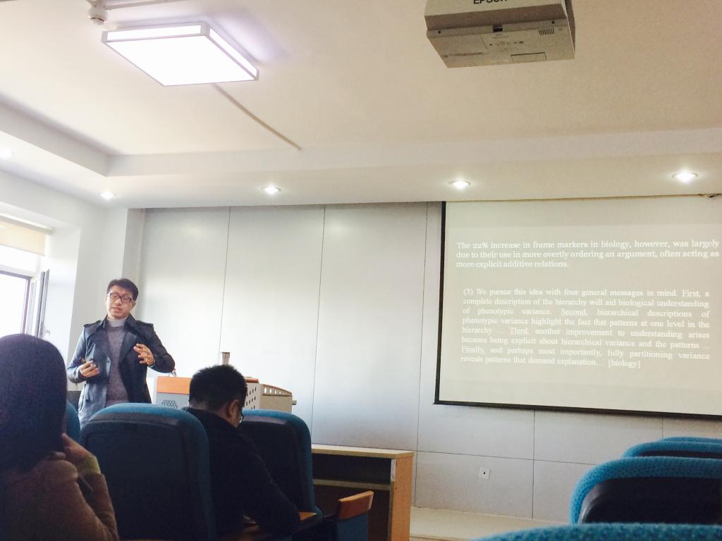 2017年10月30日,吉林大学公共外语教育学院,匡亚明特聘教授姜峰应北航开云kaiyun官方网站邀请,在如心楼806为开云官网师生带来题为“Disciplinarymetadiscourse and academic Interaction: Where’s it all Going?”的精彩讲座。开云kaiyun官方网站董敏副院长主持了本次讲座。