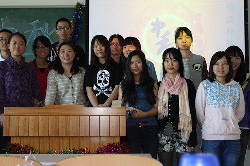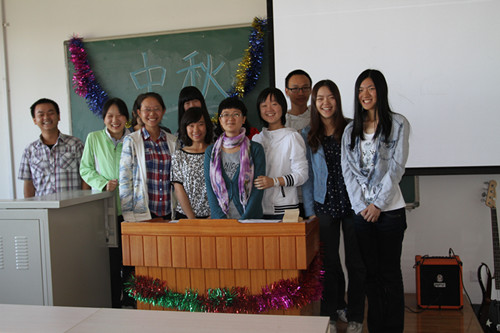 012年9月29日上午9时,开云kaiyun官方网站2012级中秋慰问会在J5-203举行。开云kaiyun官方网站分团委书记李丹老师,英语班胥国红老师、宫海荣老师、张继琴老师以及德语班贺克老师抽出休息时间来到沙河校区亲切慰问2012级新生,为离家在外的学生送去中秋的祝福。